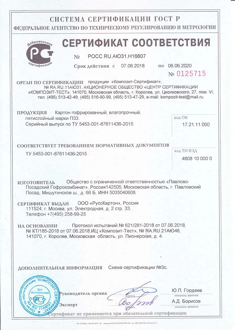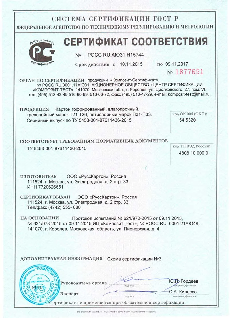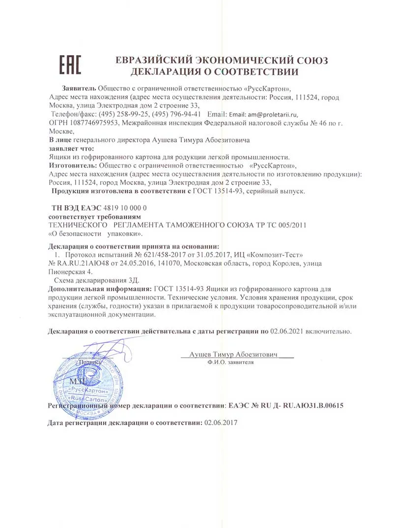 | НАИМЕНОВАНИЕ | ООО «РуссКартон» |