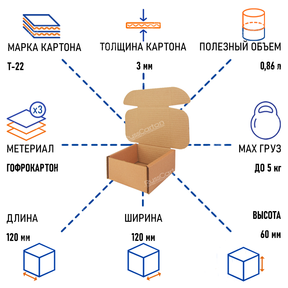 Картонный короб размером 120х120х60 мм — отличный вариант для упаковки и транспортировки мелких предметов. Изготовленный из трехслойного гофрокартона марки Т-22, он обладает высокой прочностью и устойчивостью к внешним воздействиям, обеспечивая надежную сохранность содержимого. Благодаря бурому цвету, короб имеет универсальный внешний вид. Он подходит для разнообразных целей, включая отправку товаров почтой и хранение мелких деталей на складе. Простая конструкция позволяет легко складывать и разворачивать короб, что экономит место при хранении. Экологичный материал делает его безопасным для окружающей среды и позволяет вторично перерабатывать.