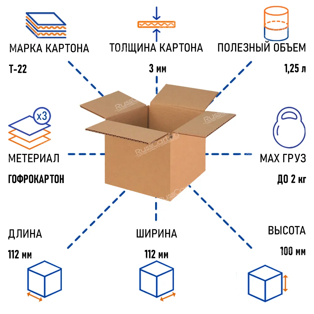 Картонная коробка 112х112х100 мм, Т-22 бурый