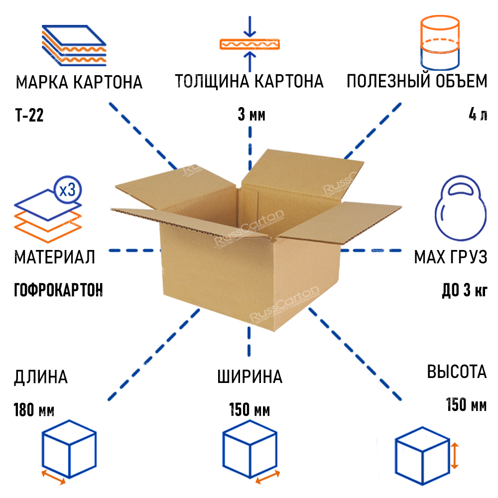 Картонная коробка 180х150х150 мм, Т-22 бурый