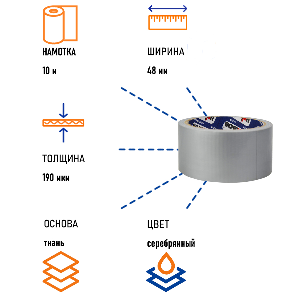 Универсальная клейкая лента из хлопчатобумажной ткани, ламинированная полиэтиленом, используется для уплотнения вентиляционных труб, резиновых шлангов, укрывных пленок.