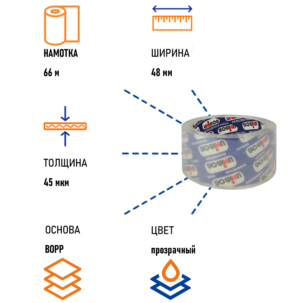 Прозрачная клейкая лента, состоящая из прочной полипропиленовой пленки с клеевым слоем на акриловой основе. Скотч применяется для запечатывания картонных коробок, мешков и пакетов, а также для скрепления листов гофрокартона. Также рекомендуем использовать прозрачный скотч для укрепления тары с вещами при переезде. Этот материал отлично подходит для защиты вещей в мешках и пакетах от грязи и воды.