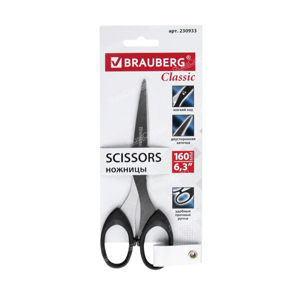 Ножницы BRAUBERG "Classic", 160 мм, черные